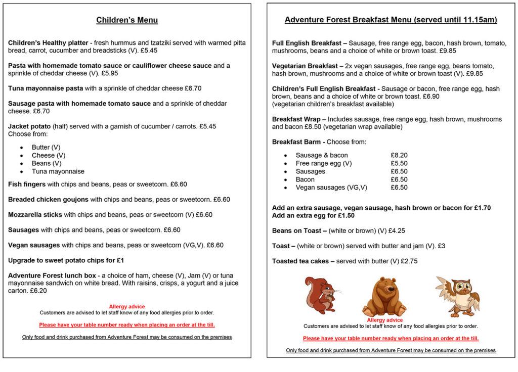 Adventure Forest has a luxurious café for parents to relax. Serving delicious fresh homemade food and cakes.