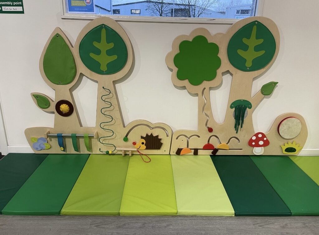 We have a 2 tier forest themed toddler area full of exciting equipment. Come and explore our interactive Kopy Kat panel! We have a secret hidey hole with an infinity panel, a slide with ball pool and lots more fun activities for 0-3 year olds.